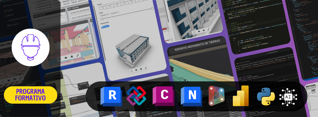 Domina en solo 4 semanas la gestión BIM con Power BI, Python y usa la IA para transformar datos de modelos de Revit, Civil 3D, Navisworks e IFC en dashboards inteligentes, automatizar análisis y tomar decisiones más estratégicas en tus proyectos AEC.